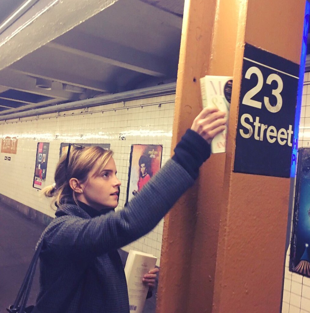 Oltre a seguire il gruppo di lettura, Emma ha attivato una sorta di campagna parallela fai da te: sui propri social mostra luoghi in cui nasconde copie di libri particolarmente significativi, per lasciarle a disposizione e invitare i suoi follower a trovarli e leggerli.