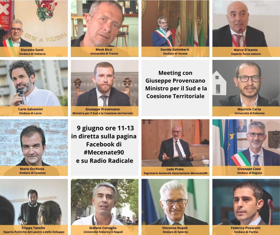 Mecenate 90 è un’associazione che si occupa di valorizzazione e gestione dei beni culturali, per lo sviluppo a base culturale delle città e dei territori. Opera prevalentemente per conto di Amministrazioni Comunali e di Soprintendenze statali. L’incontro previsto per il 9 giugno 2020 parla del ruolo delle città intermedie nella ripresa post pandemia e sarà trasmesso in diretta Facebook sulla pagina dell’associazione e su Radio Radicale.